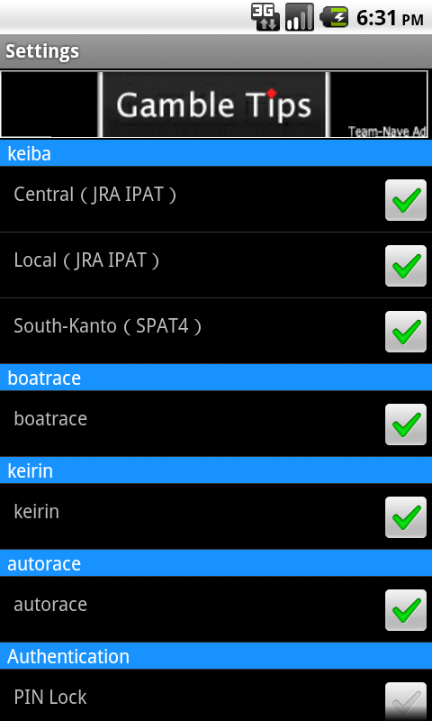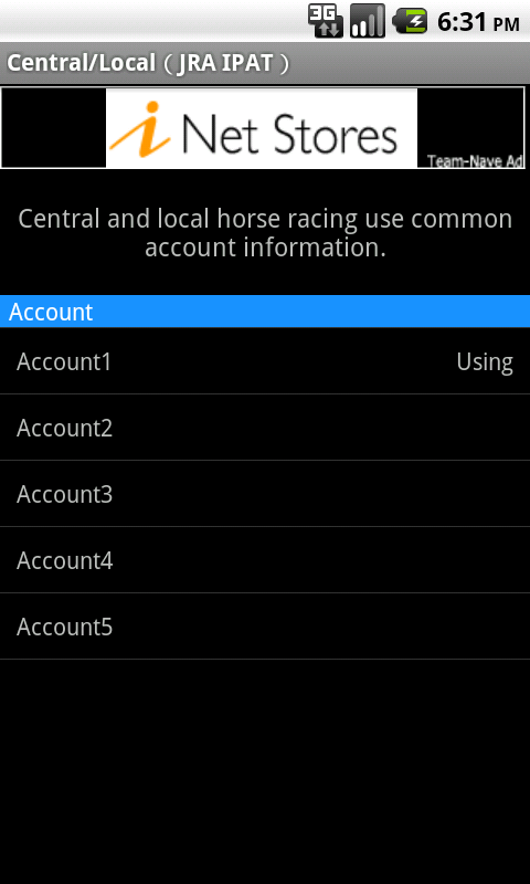 "OneTapLogin@Gamble" is an application which saves login information and can log in to the vote site of a municipally operated race by a one tap. Login information is attached to each vote site, and can be saved to five. The vote site which can be used now is as follows. - Central (JRA-IPAT) - Local (JRA-IPAT) - South-Kanto (SPAT4) - boat race - keirin - autorace When this application is used, not all responsibility carries out whether he would like to produce now [ negative ] to all problems, such as becoming damage, an obstacle, etc. Screen images of "OneTapLogin@Gamble" for Android